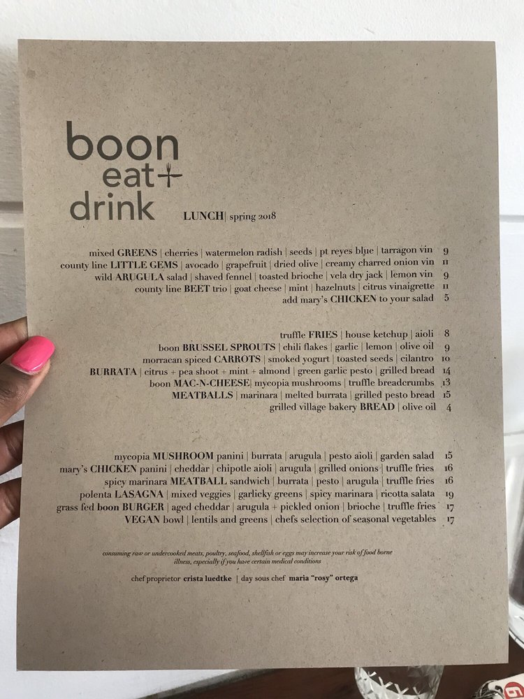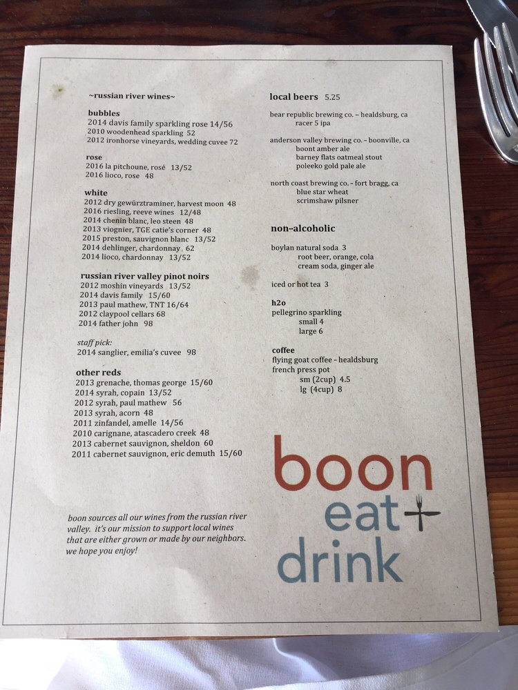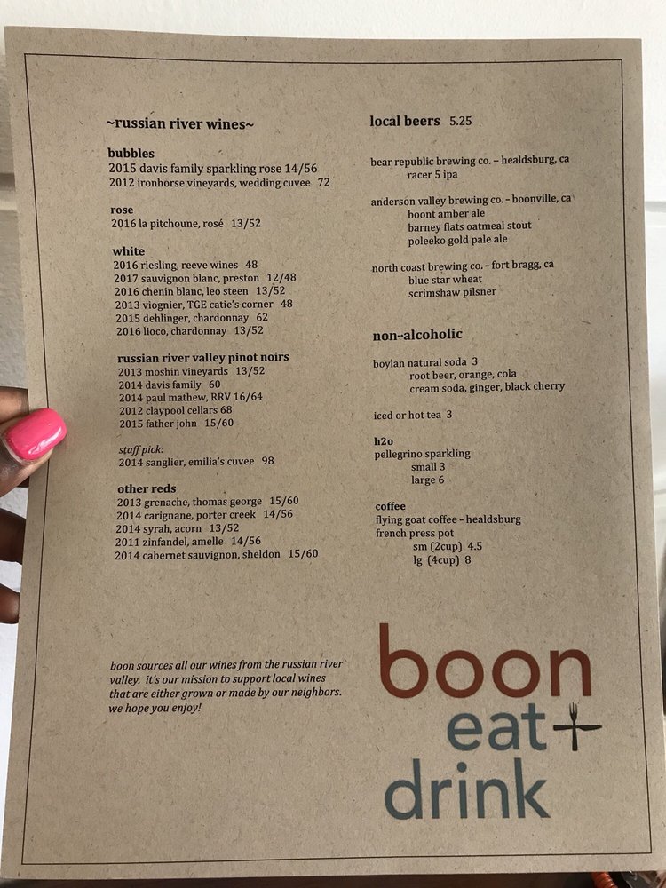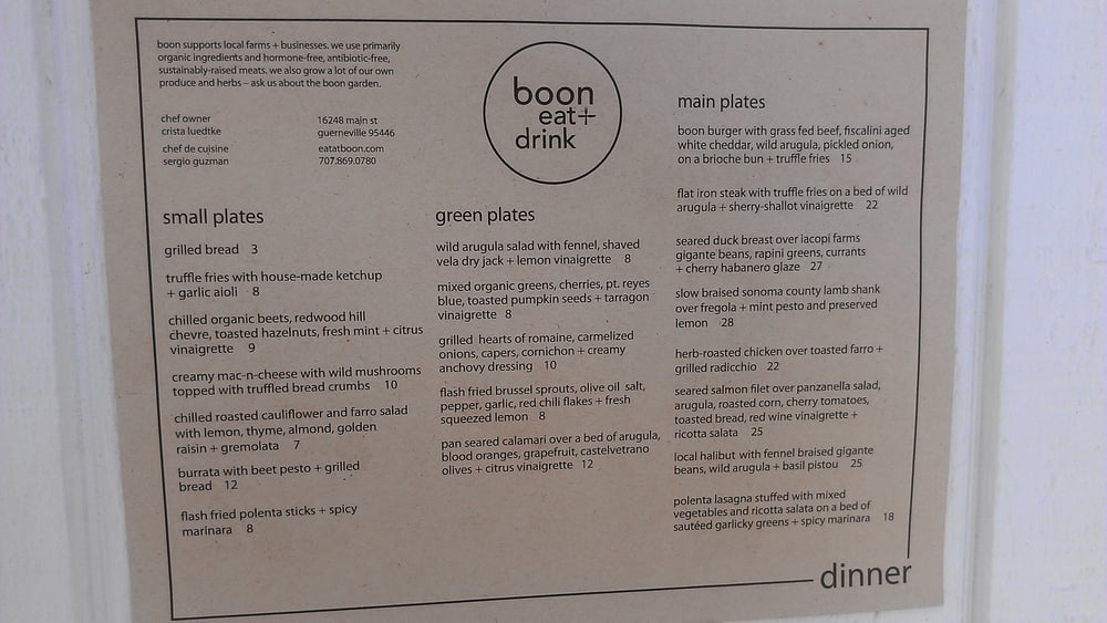 Located in Guerneville, CA, boon eat drink is a gem for foodies seeking a unique dining experience. This LGBTQ-owned and women-owned establishment offers a menu filled with delicious salad, New American cuisine, and a great selection of wine. From the mouthwatering Brussel Sprouts to the perfectly cooked Pot Roast, every dish is carefully crafted to impress. The cozy and intimate ambiance adds to the overall dining experience, making it a perfect spot for a romantic dinner or a casual meal with friends. With options like vegan bowls and burgers with a side of truffle Mac and cheese, there's something for everyone at boon eat drink. The attentive service, relaxed atmosphere, and delectable food make this restaurant a must-visit for those craving a memorable dining experience.